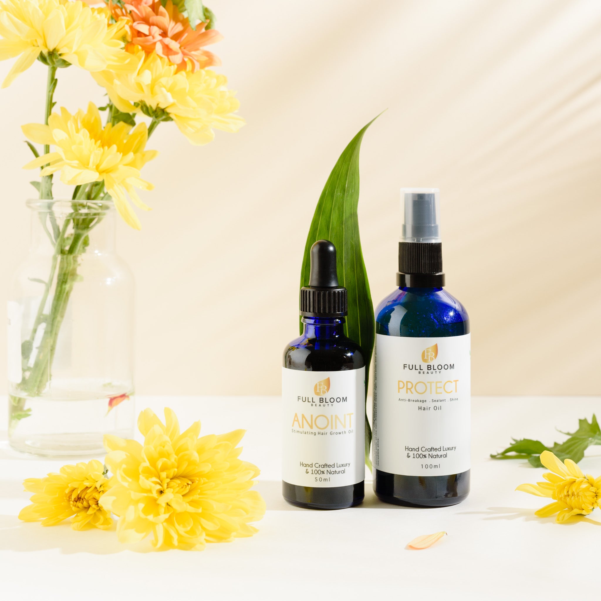 Save with this bundle deal that combines 2 essential products to grow and protect your hair so it fully blossoms. Anoint hair growth oil and Protect anti breakage moisture sealant oil